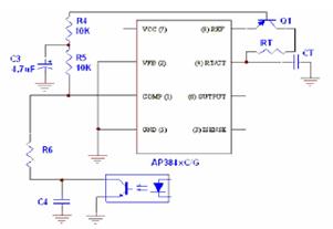 從以上分析可以得出,AP384XC是具有高性能的電流型PWM控制器。只要設計得當,它可以滿足所有通用開關電源應用需求。