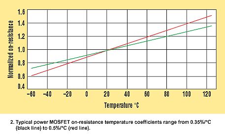 對于開關MOSFET和同步整流器兩者,都是選擇作為此迭代過程開始點的最大允許裸片結溫(TJ(HOT))。大多數MOSFET數據參數頁只給出25°C的最大RDS(ON),,但近來有一些也提供了125°C的最大值。MOSFETRDS(ON)隨著溫度而提高,通常溫度系數在0.35%/°C至0.5%/°C的范圍內(圖2)。如果對此有所懷疑,可以采用更悲觀的溫度系數和MOSFET在25°C規格參數(或125°C的規格參數,如果有提供的話)計算所選擇的TJ(HOT)處的最大RDS(ON):RDS(ON) HOT =RDS(ON) SPEC ×[1+0.005×(TJ(HOT)?TSPEC)]