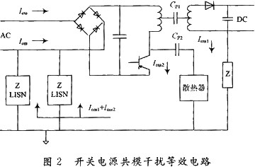 如圖1所示,電網中含有的共模和差模噪聲對開關電源產生干擾,開關電源在受到電磁干擾的同時也對電網其他設備以及負載產生電磁干擾,例如返回噪聲、輸出噪聲和輻射干擾等。進行開關電源EMI/EMC設計時,一方面要防止開關電源對電網和附近的電子設備產生干擾;另一方面要加強開關電源本身對電磁干擾環境的適應能力。下面用等效電路分別介紹共模和差模干擾產生的原因及路徑。