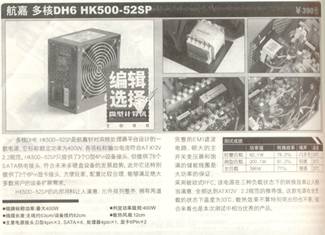 航嘉“多核DH6”是一款實現數字家庭多任務處理,為雙核處理器量身定作的電源。額定功率400W,符合Intel ATX2.2版規范,雙路+12V輸出,+12V2峰值電流達到16.5A,滿足雙核處理器在開機瞬間峰值電流的要求;+5VSB的峰值電流高達4A,滿足多USB設備的供電需求;支持Intel ICH8南橋芯片組,支持6個SATA,待機功耗小于1W,轉換效率大于83%,支持雙PCI Express顯卡,目前已通過Intel雙核心處理器認證。隨著數字家庭的普及,USB設備應用越來越廣泛,而USB主要靠+5VSB供電(也有一部分是+5V),在這種情況下,就需要電源有更強的+5VSB輸出能力。因此Intel 2.2版電源規范要求+5VSB的輸出電流達到2.5A。多核DH6加強了+5VSB的輸出能力,額定輸出電流達到3A,峰值電流4A,完全滿足數字家庭的應用。