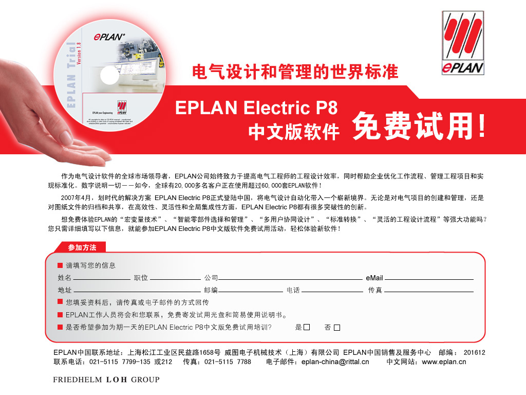3、 EPLAN工作人員將會和您聯系,免費寄發試用光盤和簡易使用說明書。