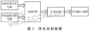 蓄電池溫度控制在正常充電時,電池的溫度變化并不明顯,但是,當電池過充時,其內部氣體壓力將迅速增大,負極板上氧化反映使內部發熱,溫度迅速上升(每分鐘可以高幾個攝氏度)。所以PIC16C73B單片機可以根據電池的溫度變化值判斷電池是否充滿,從而發出停充控制信號。