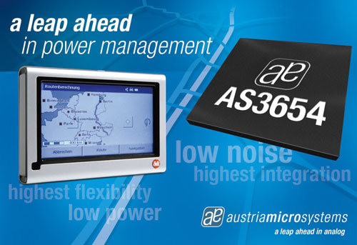奧地利微電子將于 2008年1月在 Las Vegas 舉行的消費電子產品展覽會(CES)上展示 AS3654,AS3658 電源管理單元作為此成功產品系列中的最新成員也將同時發布。AS3654 和AS3658 均采用 BGA 封裝,軟件完全兼容。