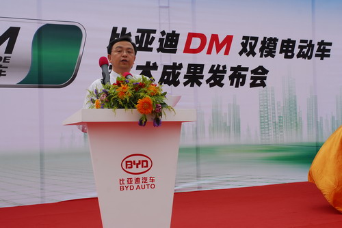 發布會上,比亞迪公司總裁王傳福對比亞迪F3DM雙模電動車技術成果作了全面的介紹,據悉,搭載比亞迪新能源汽車最新技術成果DM雙模電動車技術的 F3DM將于年內上市。深圳市政府副秘書長高國輝在發布會上致辭。劉應力先生成為比亞迪F3DM雙模電動車的最先體驗著,是第一個試駕該成果的“客戶”。
