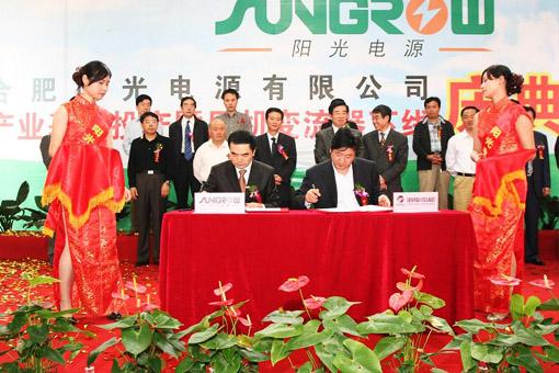 在慶典活動現場,我司還和湘電風能、東方汽輪、山東瑞其能電氣、麥德風能等公司分別簽訂了大型風電機組變流器的供銷合同。