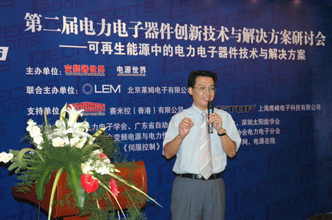 會議主題為“可再生能源中的電力電子器件技術(shù)與解決方案”,約150名專家、教授、企業(yè)領(lǐng)導、技術(shù)工程師及業(yè)內(nèi)各位朋友出席了本次會議。目前,當大力開發(fā)利用可再生能源,實現(xiàn)能源的可持續(xù)發(fā)展成為解決當前我國能源短缺的根本途徑時,許多變頻、電源、伺服制造商及系統(tǒng)集成商已經(jīng)著力風能和太陽能市場,研發(fā)、生產(chǎn)相應(yīng)的變頻、伺服、電源等電力電子裝置產(chǎn)品,這其中,電力電子器件技術(shù)將決定著裝置的水平。為使眾多變頻、電源、伺服制造商及系統(tǒng)集成商深入了解風能和太陽能等可再生能源領(lǐng)域?qū)τ陔娏﹄娮友b置的需求,更重要的是了解最新電力電子器件技術(shù)和產(chǎn)品如何幫助他們生產(chǎn)更高品質(zhì)的變頻、電源和伺服產(chǎn)品,以滿足風能和太陽能等領(lǐng)域?qū)τ诟咝阅茈娏﹄娮友b置的需求,本次會議著重探討了最新電力電子器件技術(shù)以及風能和太陽能領(lǐng)域的電力電子技術(shù)解決方案,并對正在高速發(fā)展的軌道交通行業(yè)給予了大力關(guān)注。