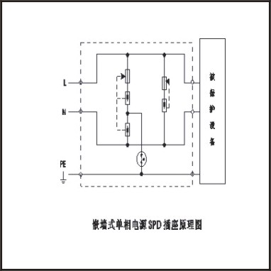 第三級(D類)電源SPD應(yīng)安裝在靠近電源設(shè)備的電源接口處。SPD接地端與電源工作接地(PE)連接,連線應(yīng)盡可能的短和直,長度一般不應(yīng)大于0.5米。若電源無工作接地,應(yīng)另做防雷接地。防雷接地的做法可采取把建筑物墻柱鑿開小孔,露出鋼筋,焊上一根帶螺栓的鋼條,再用一根帶圓孔接頭的銅導線與SPD連接,接地電阻≤10Ω
