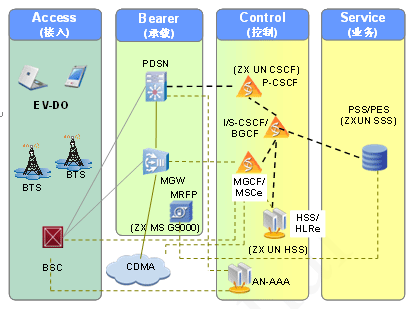 中興通訊CDMA2000 ALL-IP核心網可以平滑的升級到IMS域: