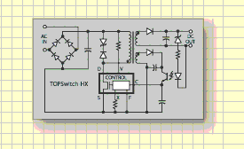 圖1 一個典型的TOPSwitch-HX回掃應用系統(tǒng),在其開關/控制器內部集成了大部分所需的元件