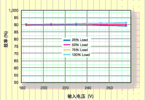 重要的轉換功能為高效能應用提供了有力的支持。這款開關電源能夠在185~265VAC的寬輸入電壓范圍內工作。這一設計的關鍵特性在于它在整個輸入電壓范圍內都能夠保持極高的效率(如圖3所示)。