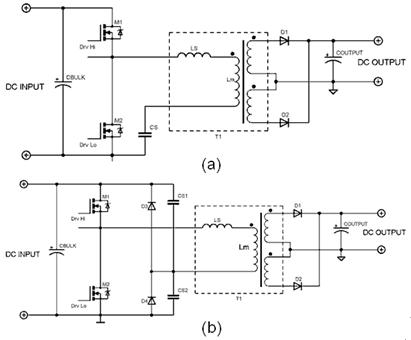圖1:半橋LLC轉換器的兩種不同配置:(a)單諧振電容;(b)分體諧振電容