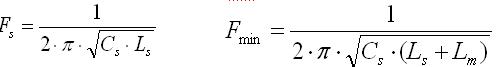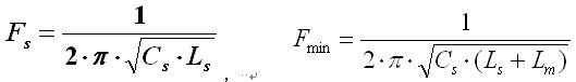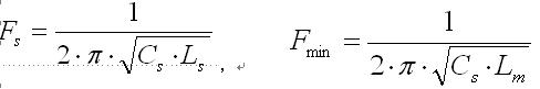 串聯諧振頻率Fs和最小諧振頻率Fmin分別為: