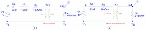 圖5:分立(a)和集成(b)諧振回路解決方案的仿真原理圖。