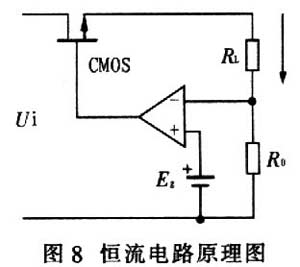 圖8為最基本的恒流電路原理圖,圖中RL為負載電阻(實際為LED陣列),Ro為采樣電阻,Eg為參考電壓,則輸出電流Io=Eg/Ro,說明穩流電源的輸出電流由基準電壓Eg和采樣電阻Ro決定,Eg和Ro一經確定,穩流電源的輸出電流不受輸出電源電壓和負載影響而保持穩定。由此可知,要想獲得一個穩定的輸出電流,必須提供一個高精度的基準電壓和采樣電阻。