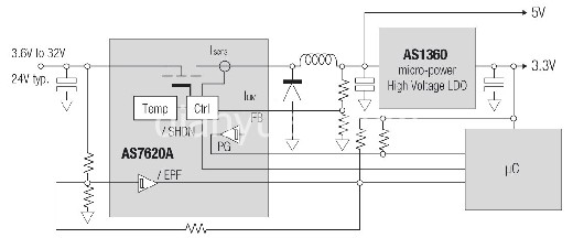 奧地利微電子發布業內首款 32V、500mA 降壓型調節器 AS7620,內置雙路電源監視器AS7620 高壓、降壓型調節器的靜態電流低至 30µA,局部負載下具有高效率,占空比高達100%,可在電源發生故障時最大程度延長設備運行時間。