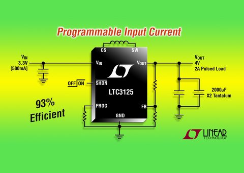 2009年1月5日,凌力爾特公司(LinearTechnologyCorporation)推出一個1.6MHz、電流模式、同步升壓型DC/DC轉換器LTC3125,該器件具有一個準確和可編程的平均輸入電流限制。其內部1.2A開關在1.8V至5.5V的輸入電壓范圍內可提供高達5.25V的輸出電壓,從而非常適用于鋰離子/聚合物電池、3.3VPC板卡插槽或多節堿性/鎳氫金屬電池應用。LTC3125可從一個3.3V輸入提供高達500mA的連續輸出電流(在5V)。