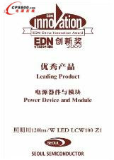 世界級LED企業首爾半導體(株)(法人代表:李貞勛,www.acriche.cn)稱,微型照明用LED(產品名稱:LCW100Z1)在電子專業雜志《EDN》評選的電源器件與模塊(Power Device and Module)部分獲獎,榮獲《2009年EDN創新獎(Innovation Award)》的LCW100Z1,在市場性、經濟性、熱效率性方面獲得了很高的評價。