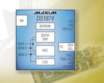 日前,Maxim推出帶有數字LDD接口的SFP+控制器DS1874。器件控制和監(jiān)測SFF、SFP和SFP+光模塊的全部功能,完全支持SFF-8472標準。DS1874配合MAX3798或MAX3799激光驅動器/限幅放大器使用,能夠為APC環(huán)路控制、調制電流控制和視覺保護功能提供低成本方案。該芯片組省去了軟件開發(fā)的工作,從而降低了成本,加速了市場化進程。