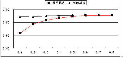 針對電源部分的損耗,戶外電源的工作模式和室內電源是一樣的,正常情況下為均流工作模式。市電正常時模塊負載率較低,電源系統大多數沒有工作在系統最佳效率區間,因此可以采用電源模塊休眠技術根據系統負載狀態,動態調整工作模塊數量,使系統始終工作在最佳效率區間,從而降低系統的能耗。圖1表示了電源系統在普通工作模式下和節能模式下的系統典型效率比較。從圖1可看出,采用休眠節能模式,電源系統的效率在整個負載范圍內基本保持不變,有效的降低了電源系統在低負載條件下的能耗。另一方面,對于戶外電源來說,電源系統效率提高會降低設備倉的發熱量,降低設備倉的溫度。