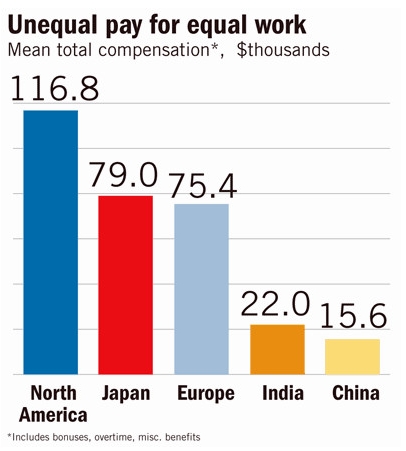 從今年初開始,西方世界就有數千個工程師工作機會外流;而同時亞洲的工程師雖在經濟衰退中得到某些程度的工作保障,但他們也感受到企業主要求員工負擔更多工作、卻減少聘雇新人以穩定營利的壓力。