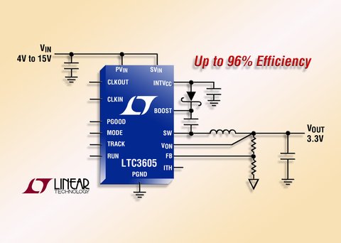 LTC3605EUF采用4mm×4mm QFN-24封裝。以1,000片為單位批量購買,每片價格為4.25美元,并有現貨供應。如需更多信息,請登錄www.linear.com.cn。