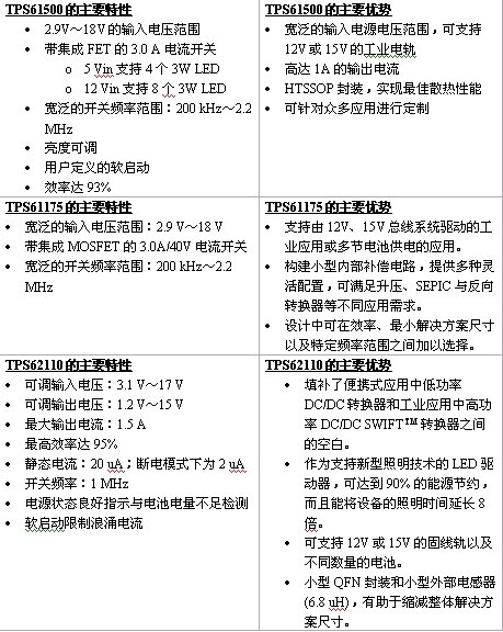 2009年2月3日,德州儀器(TI)宣布推出高功率DC/DC升壓LED驅動器(TPS61500)高壓DC/DC升壓轉換器(TPS61175),及降壓DC/DC轉換器 (TPS62110)三款新型電源管理芯片。這三款產品可支持高達18V 的輸入電壓并具有較小的電壓基準,有助于改進LED電路設計。此外,這些低能耗產品具備多種功能,可廣泛應用于指示牌、環境照明、辦公照明、普通照明、醫療及傳感器等各種LED應用。如欲了解產品詳情,敬請訪問: