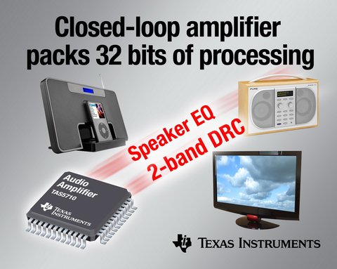 日前,德州儀器(TI)宣布推出兩款可將32位高級音頻處理功能與20瓦立體聲輸出功率完美整合在同一器件上的數字輸入音頻放大器,進一步壯大了其數字音頻產品陣營。TAS5709與TAS5710不但支持揚聲器均衡(EQ)與雙頻帶動態范圍控制(DRC),而且還可提供TI獨特的3D與低音增強技術,從而通過拓展音場(sound stage)與改進低音響應來提升整體音效體驗。TAS5710采用TI閉環架構,可降低消費類音頻產品對電源性能的要求,可在實現豐富、自然音質的同時,降低系統成本,充分滿足高清電視(HDTV)、媒體擴展基座、數字無線電廣播以及條型音箱(sound bar)等各類應用的需求。(更多詳情,敬請訪問:http://focus.ti.com.cn/cn/docs/prod/folders/print/tas5710.html?DCMP=CN_HPA_GSE&HQS=Amp-184。)