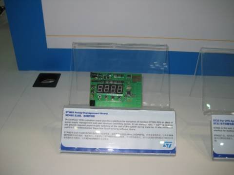 這次展出的電動(dòng)車以及低功耗觸摸控制方案就是基于STM8平臺(tái)的產(chǎn)品系列--STM8S。STM8S是針對(duì)工業(yè)溫度范圍開(kāi)發(fā)的8位通用MCU,整合了新一代內(nèi)核的高速度、處理性能和代碼效率。“STM8S系列采用工業(yè)標(biāo)準(zhǔn),抗干擾能力很強(qiáng),性價(jià)比高,主要應(yīng)用于家電、汽車等領(lǐng)域。”吳建明表示:“今年下半年ST還將推出STM8L,針對(duì)便攜式、電池供電、對(duì)功耗敏感的應(yīng)用。”