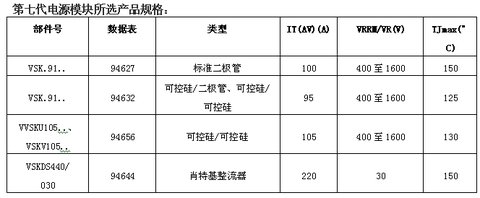 第七代模塊均采用與TO-240AA兼容的ADD-A-PAK封裝,將兩個有源元件整入各系列,并包括標準二極管、可控硅/二極管、可控硅/可控硅及肖特基整流器組合。