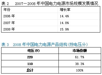 2008年中國電力電源市場呈現(xiàn)如下特征:
