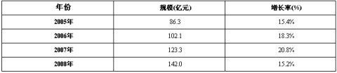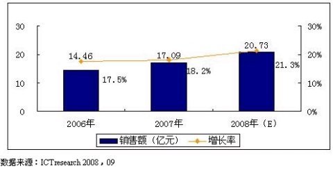 表1 2006-2008年中國機房產(chǎn)品市場規(guī)模與增長狀況