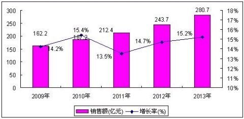 表7 2009-2013年中國機房產(chǎn)品市場市場銷售額預(yù)測