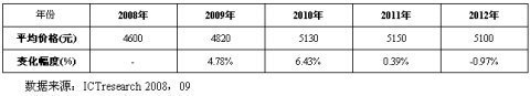 表9 2008-2012年中國機柜市場產(chǎn)品平均銷售價格預(yù)測