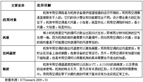 表10 機房專用空調(diào)與舒適性空調(diào)的差異比對
