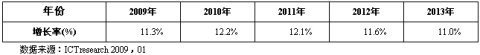 依據(jù)上述預(yù)測結(jié)果,ICTresearch繪制出2009年至2013年中國機房空調(diào)市場的增長速度變化圖表。