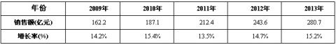 表11 中國機房空調(diào)市場2009-2013年市場銷售額增長率預(yù)測