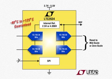 | LTC2634 | 12、10、8 | 4 | SPI | 3mm×3mm QFN-16、MSOP-10 |