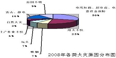 根據2008年全國火災統計情況顯示:全年共發生火災13.3萬起(指統計月,不含森林、草原、軍隊、礦井地下部分火災,下同),死亡1385人,受傷684人,直接財產損失15億元,與2007年相比,損失上升39.3%。從引發火災的原因看,電線短路、超負荷、電器設備故障等電氣原因引發火災4萬起,占總數的30.1%,比重比去年提高1.3個百分點;其次,用火不慎引發火災3萬多起,占23%;吸煙引發火災9762起,占7.3%;玩火火災占7.1%、生產作業不慎火災占5.5%、自燃火災占2.2%、雷擊、靜電等其它原因火災占15.7%、原因不明的火災占9.1%。電器火災事故所占比例之高,是各類火災之首位。