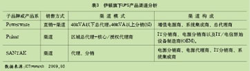 另外,在伊頓整合三個品牌之后,Powerware、Pulsar和山特的銷售相對獨立。對于其間的一些共有商機,伊頓為此建立了Key Accounts部門,負(fù)責(zé)總行(部)級的選型和集采。該部門將統(tǒng)一使用伊頓品牌,以保證三方客戶共享,促進三個系列產(chǎn)品銷售。此外,Global Accounts也是伊頓新建部門,其將負(fù)責(zé)與全球性客戶如惠普與IBM的合作策略規(guī)劃工作。■