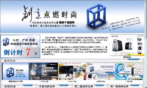 5月22日,“創(chuàng)意點(diǎn)燃時尚 09機(jī)箱流行趨勢發(fā)布會暨我的個性空間——‘航嘉杯’第三屆機(jī)箱創(chuàng)意設(shè)計大賽頒獎典禮”將在廣東省河源市為您開啟,屆時將揭曉09年機(jī)箱流行趨勢及“航嘉杯”第三屆機(jī)箱設(shè)計大賽獲獎作品,眾多媒體及機(jī)箱設(shè)計界專家將親臨現(xiàn)場,共同見證這一盛會。