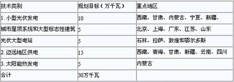 也就是中國要到2010年所有的太陽能發(fā)電一共才只有30萬千瓦。還不到2008年所生產的太陽能電池板的六份之一。發(fā)改委還提出要到2020年,太陽能發(fā)電量只有180萬千瓦,也還沒有達到2008年全年生產的太陽能電池板的總量。
