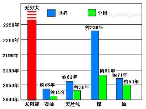 中國的能源70%以上都是依靠煤炭。煤炭加上石油占90%以上。而這兩種能源再加上天然氣都是產生二氧化碳的罪魁禍首。所以中國的二氧化碳排放量早在2006年已經超過美國成為全球第一。中國的排放量為62億公噸,其中的5億5000萬公噸來自水泥。而美國的排放量為58億公噸,而其中的5000萬公噸來自水泥。雖然核能不產生二氧化碳,但是它不是可再生能源,也有枯竭的時候。雖然水力是可再生能源,但是中國的河流大多數夾雜有大量的泥砂,過去已經有黃河三門峽的經驗教訓,現在的長江三峽還前途未卜,而且水電可開發(fā)的量是有限的。甚至就拿中國蘊藏量最大的煤炭來說,也是十分有限的,到本世紀末也會開采完畢。那時候,所有的火電廠都要關門大吉。