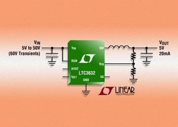圖片說明:具僅 12uA 靜態(tài)電流的 50V、20mA 同步降壓型轉(zhuǎn)換器