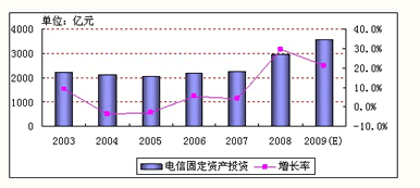 圖1:2003-2009年中國電信固定資產投資情況