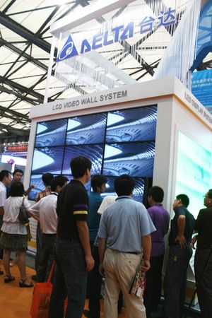 中達LED顯示產品鮮麗的色彩、高亮度的顯示、綠色環保的性能吸引了來自國內外觀眾的駐足。為了更好地展示當今LED的前沿技術和先進產品,工程師以中達LED為例,進行了詳細的解說和介紹:中達LED采用了標準的模塊化生產,相比于業界其他廠商,其產品具有更強的通用性、互換性和一致性。另外,一貫堅持"環保、節能、愛地球"的中達電通,在產品設計之初就致力于為客戶帶去更加高效節能的產品,其獨有的電源控制系統可使電源有效率高達90%以上,功耗可降低25%左右,能更好的響應國家節能減排的號召。同時,針對戶外LED,中達電通更是為客戶考慮周到,特別設計了32段亮度控制功能,隨著戶外環境光線變化,可自動調節整屏亮度,從而提升節能效果。