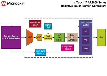 AR1000控制器推出之前,實(shí)現(xiàn)電阻式觸摸用戶界面的嵌入式系統(tǒng)只限于基本的模數(shù)轉(zhuǎn)換器(ADC),而且需要大規(guī)模開發(fā)和集成。AR1000控制器通過提供先進(jìn)的專有觸摸屏解碼算法消除了這類試錯(cuò)工程,使應(yīng)用得到完全處理的可靠觸摸坐標(biāo)。AR1000控制器融合了Microchip出色的單片機(jī)制造能力與最近收購的Hampshire公司在設(shè)計(jì)電阻式觸摸屏控制器方面逾15年的豐富經(jīng)驗(yàn),使得嵌入式電阻式觸摸設(shè)計(jì)的產(chǎn)品開發(fā)風(fēng)險(xiǎn)減小、系統(tǒng)總成本降低及上市時(shí)間縮短。由于成本低,能夠利用手指、透過手套或手寫筆輸入,以及總體上便于制造和集成,電阻式觸摸技術(shù)深受歡迎,適用的應(yīng)用涵蓋手機(jī)、工業(yè)自動(dòng)化、零售銷售點(diǎn)終端、博彩/娛樂設(shè)施和汽車導(dǎo)航系統(tǒng)。