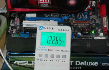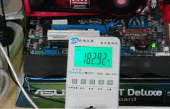 下面以航嘉多核R80為平臺測試這款CPU的功耗。默認狀態下,由于核心電壓值與為開放倍頻限制的其他型號幾乎完全一樣,因此其功耗非常低,核心電壓1.240V,CPU滿載,平臺功耗122.65W;核心電壓為1.43V時,E6500K可以穩定運行在4.8Hz進行性能測試,在滿載狀態下其功耗值為182.92W。