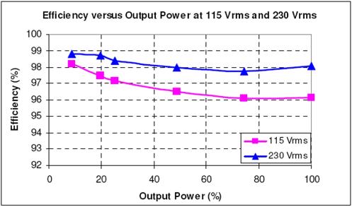 圖1:基于NCP1631單芯片交錯式控制器的300 W PFC電路板能效測試結果