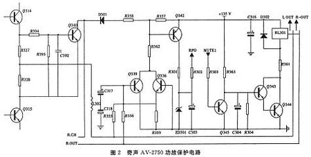 當繼電器不吸合,先檢查輸出端的中點電壓,若有直流輸出,則先檢修功放部份。若無直流輸出,繼電器仍不吸合,則故障在保護電路本身。著重檢查C8是否漏電,此電容漏電可能引起開機延時時間太長,或繼電器不吸合。其余故障的檢修方法可參考AV-2750。