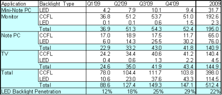 Source: DisplaySearch Quarterly LED Backlight Panel Shipment and Forecast Report